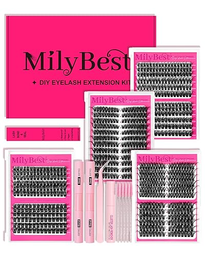 MilyBest Lash Clusters Kit 808Pcs Fluffy Eyelash Clusters D Curl Bottom Lashes Clusters 4 Styles Lash Kit with Spikes DIY Individual Eyelashes Glue Wispy Cluster Eyelash Extensions Kit De Pestañas