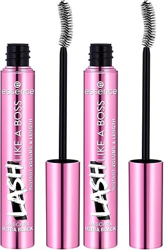 essence | Lash Like A Boss Instant Volume & Length Mascara | Ultra Black Color & Curved Fiber Brush | Vegan & Cruelty Free | Free From Parabens & Microplastic Particles (Pack of 2)