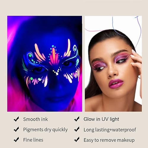 sam sugar 12 Colors Neon Eyeliner set UV Fluorescent Liquid Eyeliner Waterproof Smudge-proof Pigmented Graphic Liners shimmer Glow Eye Makeup Kit for Party & Rave