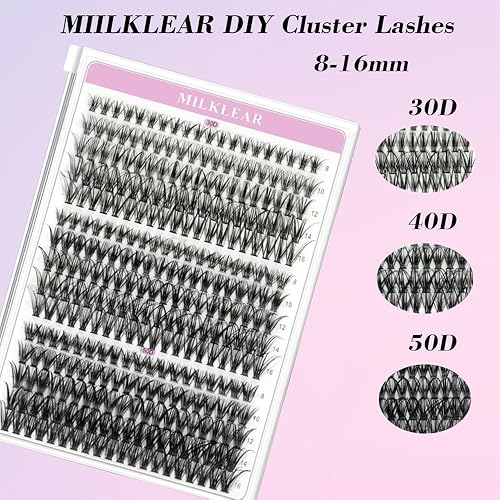 Lash Clusters 300 Pcs - 8-16mm Mixed Length Wispy Volume Lashes, 30D-50D
