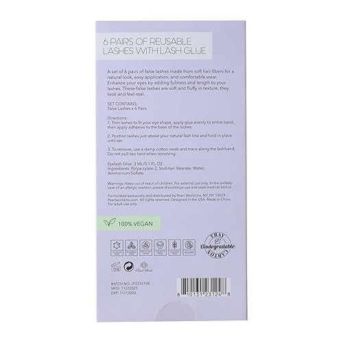 False Eyelashes Set, 6 Reusable Pairs with Lash Glue, Vegan