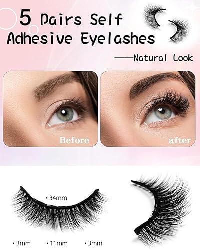 5 Pairs Self Adhesive Eyelashes Natural Look No Glue Needed Reusable Self Adhesive Lashes with Tweezers (Naturals FZ5-04)