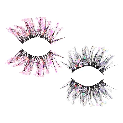 2 Pairs Glitter Luminous Eyelash Extensions for Decorative Faux False Eyelashes with Fluorescent Glow Natural Volume for Parties and Stage Makeup