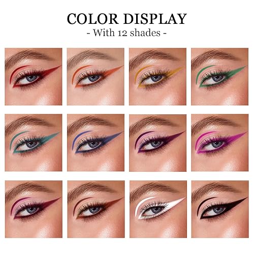 12 Colors Matte Liquid Eyeliner Set, Colorful Neon Eyeliner Pencil Rainbow Waterproof Long Lasting Matte Colorful Milti-Functional Eyeshadow Pen Eye Makeup Christmas Makeup Gift Kit for Women