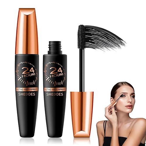 2Pcs Waterproof Silk Fibre Thick Lengthening Mascara, 2025 New Iron Wand Mascara Curling Eyelash Iron Mascaras with No Flaking, Waterproof Long-Lasting 4D Silk Fiber Lash Mascaras