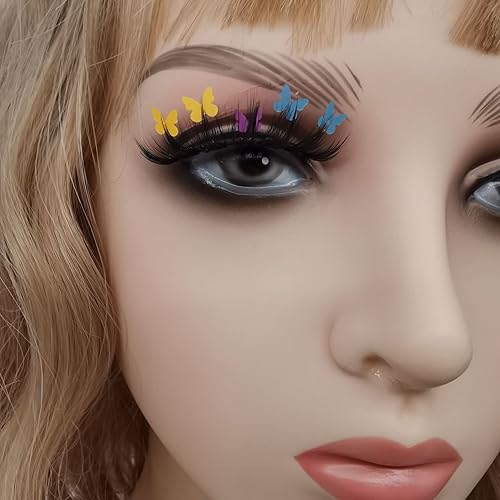 3 Pairs Glitter Lashes Sequins Colored Lashes Fluffy Mink False Lashes with Color Cosplay New Year Party Stage Makeup Colorful Fake Eyelash(h08)