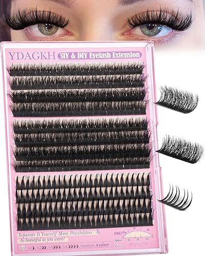 Volume Lash Clusters with Spikes SIY Lash Extensions D Curly 80D 100D Fluff Individual Eyelashes Long 12-20mm Spiky Thick Cluster Eyelash Extensions DIY Professional Eyelash Extension at home