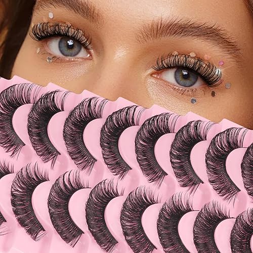 Ahrikiss Russian Strip Lashes That Look Like Extensions D Curl Fluffy False Eyelashes 10 Pairs Wispy Natural Fake Lashes Pack Fluffy 3D Volume Fake Lashes (D02)