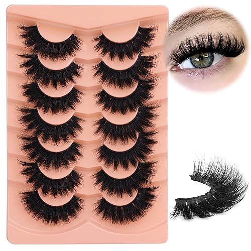 Boahankuke False Eyelashes Mink Lashes Full 18MM Cat Eye Lashes D Curvature Wispy Fake Lashes 8D Natural Strip Lashes Volume Lightweight Lashes Pack with Soft Cotton Band,7 Pairs