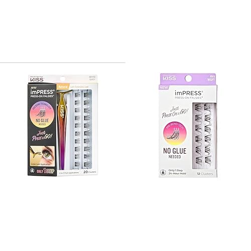 KISS imPRESS Falsies False Eyelash Clusters, Natural & Airy Wispy, 12mm-14mm, 20 & 12 Pieces, Applicator