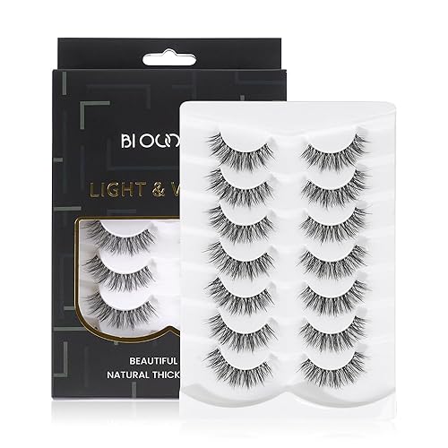 Wispy Natural Faux Mink Cat Eye False Eyelashes 3D Vegan 7 Pairs Full Strip Clear Band (BO22-2), Black