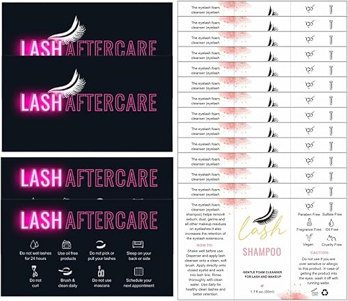 Lash Extension Aftercare Instructions Cards Lash Shampoo Label Stickers for Bottle Bath Wash Labels for Foam Pump Dispenser