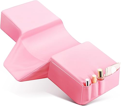 Onism Lash Pillow for Eyelash Extensions, Leather Waterproof Curved Memory Foam Lash Bed Pillow with Neck and Back Support, Pockets on Both Sides for Tools, Pink