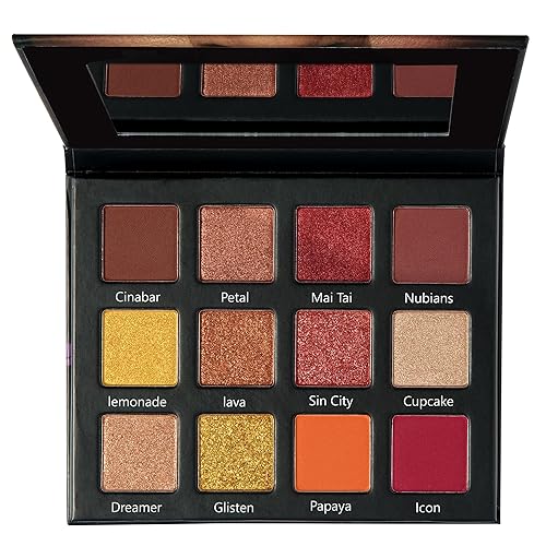 Glamazon Eyeshadow Palette, Rebel Rose, 12 Shades, Versatile Eye Makeup Set for Stunning Day-to-Night Looks, Red Tones