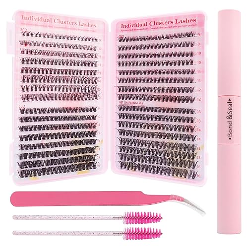 Fumwase 644PCS Thick Lash Clusters Kit Volume Lash Clusters Natural DIY Eyelash Extension with Lash Bond Tweezers and Seal Eyelash Book DIY 9-16MM 30D+40D+50D (640)