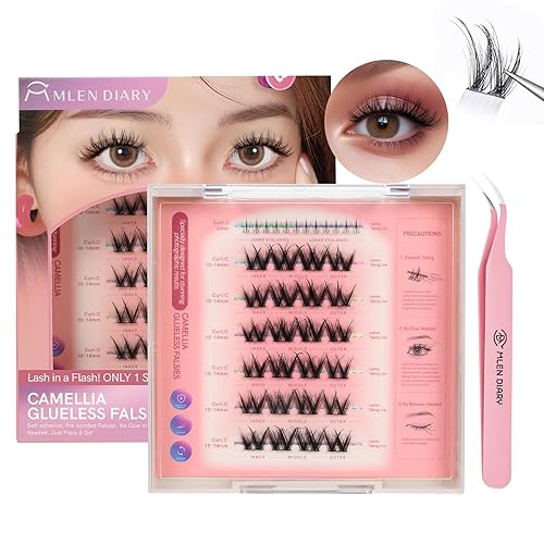 Self Adhesive Lash Clusters Kit Press-On Eyelash Clusters 10-14mm Cluster Lashes Glue Needed DIY Lash Extension Reusable with lash applicator Self Application at Home by MLEN DIARY (36 Pcs)