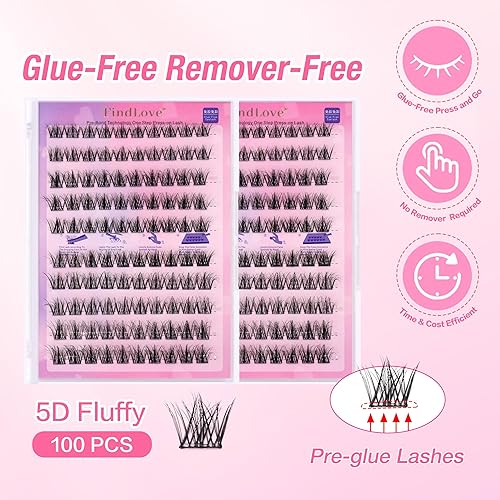 Reusable Adhesive Eyelashes Natural Look Self Adhesive False Eyelashes Lash Clusters No Glue Needed Fake Press on Clusters Eyelash Extension Waterproof Glue-free Realistic Eyelashes Pre Bond Lashes