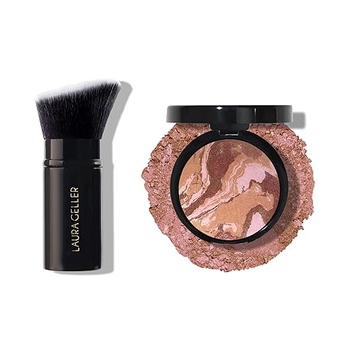 LAURA GELLER NEW YORK Baked Blush-n-Bronze 2-in-1 Bronzer Blush, Earthy Bronze + Retractable Angled Kabuki Brush