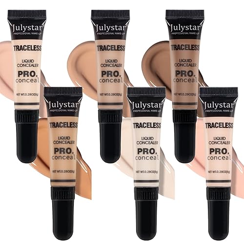 PhantomSky 6 Colors Liquid Concealer, Professional Full Coverage Long Lasting Matte and Poreless Ultra Blendable Concealer, Skin Fit Cover Liquid Concealer Face Makeup for All Skin Tones, 6 x 8 ml