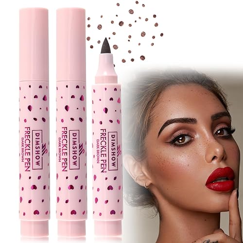 Erinde 2PCS Freckle Pen, Natural Lifelike Freckle Makeup Pen Magic Freckle Color, Waterproof Longlasting Soft Dot Sopt Pen for Natural Effortless Sunkissed Makeup, Dark Brown