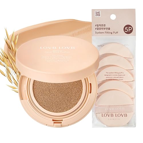 Cushion Foundation 0.42 Oz (21N Light Beige) + System Fitting Puff 5EA | Long-Lasting Buildable Coverage | Korean Cushion Makeup | Face Makeup Tool for Liquid Foundation