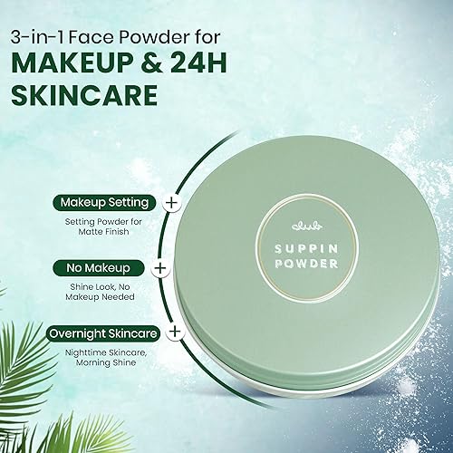 Club Suppin Matte Setting Powder Foundation + Overnight Skincare, Loose Setting Powder Makeup for Women & Men by Amino Acids, Shea Butter& Aloe Extract, 24H Long-Lasting Finish from Japan, CLEAR