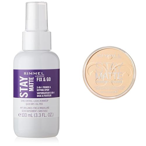 Rimmel London Stay Matte Fix & Go Primer & Setting Spray with Pressed Powder for Shine Control