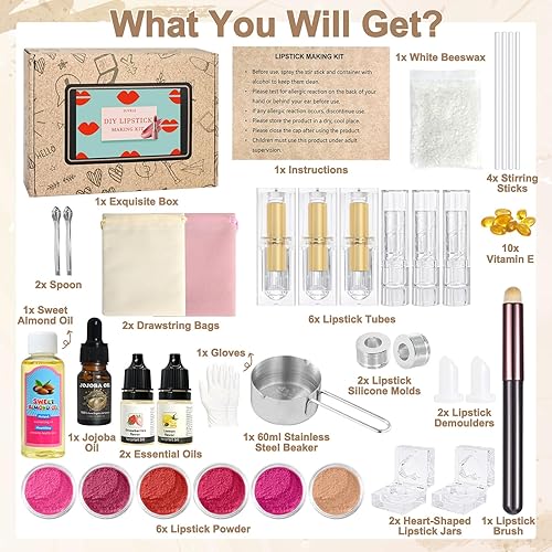 Lipstick Making Kit- 47Pcs DIY Matte Velvet Lipstick Set, Lip Gloss Kit, Make Your Own Lip Stain Kit with Beeswax Long-Lasting Quick-Drying Non-Stick Cup Lip Makeup Gift Kit for Women Beginner