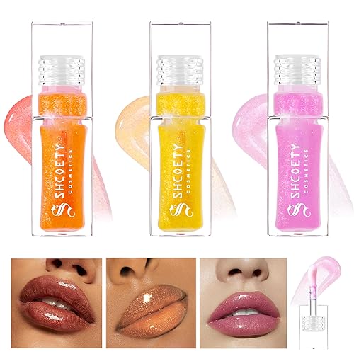 SHCOETY Shimmering Lip Gloss Set, 3 Colors, High Shine Formula, Pink Orange Yellow