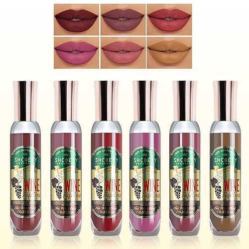 SHCOETY Wine Lip Tint Collection, 6 Colors, Long-Lasting Matte Finish, 0.3 fl oz