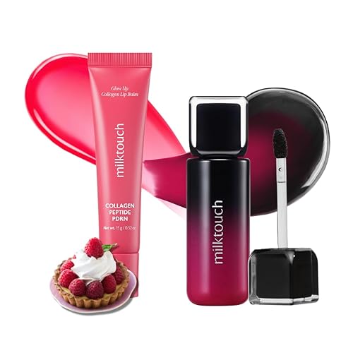 MILKTOUCH [Summer-proof Lip Combo] Black Peel Off Lip Tattoo #01 Black Cherry + Collagen Lip Balm #Berry Tart