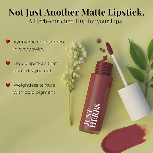 Just Herbs Ayurvedic Liquid Matte Lipstick Kit Set Of 5 With Long Lasting, Hydrating & Lightweight Lip Colour, Nudes & Browns - Paraben & Silicon Free - 5 Ml