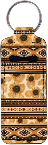 Boho Floral Pattern Lightweight Lip Balm Holster with Key Ring Portable Chapstick Pouch for Active Lifestyle