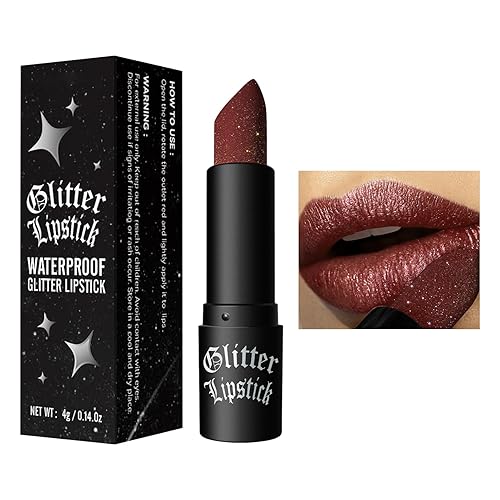 Glitter Lipstick | Dark Halloweens Makeup, Non-fading Non-stick Cup Matte Lip Balm,Waterproof Lip Glitter, Sparkly Lipstick For Women, For Mom Wife Girlfriends