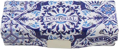 Portug'art Souvenirs Traditional Tile Azulejo Pattern Lipstick Holder with Glittering Hearts and Built-in Mirror (Blue White Azulejo)