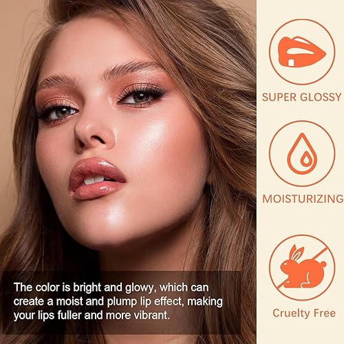 4 Colors Lip Oil Lip Glaze, Hydrating Lip Glow Oil Fit Oil Lip Care, Shiny Transparent Lip Gloss Plumping,Long Lasting Nourishing Non-sticky Fresh Clear Smooth Lip Care Product-Set A