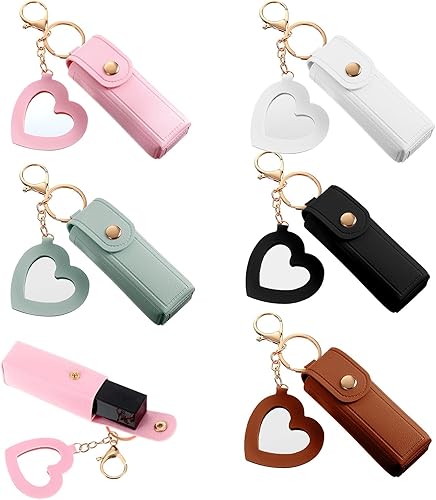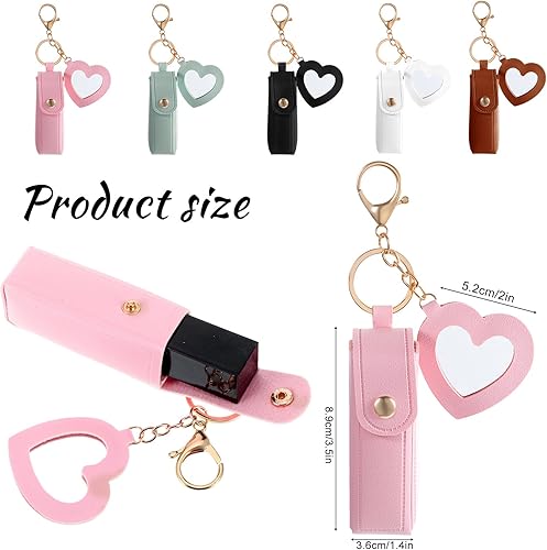 5 PCS Lipstick Holder Keychain PU Leather Potable Chapstick Holder with Mirror Soft Lip-Balm Holder Lipstick Storage Case Mini Bag Balm for Chapstick Perfume Fingernail Polish
