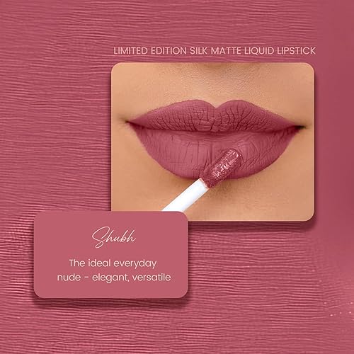 Parul Garg Beauty Silk Matte Liquid Lipstick | Long-Lasting & Smudge-Proof | Soft Matte Finish | Vegan & Clean Beauty | Hydrating with Shea Butter & Vitamin E | Shubh (Perfect Nude) | 2.5ml