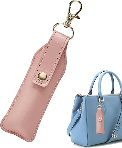Lipstick Holder Keychainn - Pu Lipstick Storage Leather Case, Small Leather Lip Cream Pouch Keyring | Lip Balm Holder Keyring