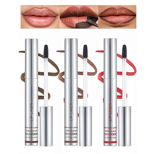3Pcs Peel-Off Lip Stain & Lip Liners Set - Waterproof, Long-Lasting, Smudge-Proof, Transfer-Proof, Semi-Permanent Matte Lip Tint for All-Day Wear – Hydrating & Kiss-Proof Lip Color (Set B, 3Pcs)