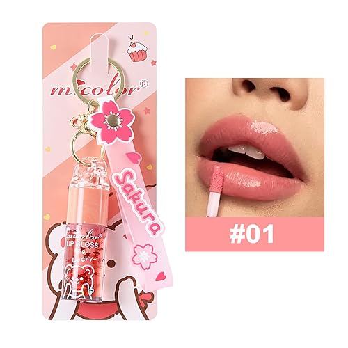 Petansy Keychain Lip Glosses Set, Girls Party Favor Including 3Pcs Assorted Flavors Moisturizing Shimmer Lip Glosses