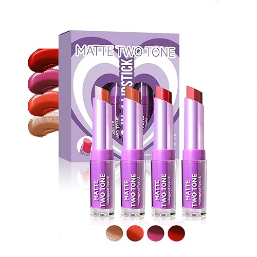 4 Pcs Lipstick, 2-in-1 Dual Tone Matte & Glossy Lipstick Set, Long Lasting, Hydrating, Moisturizing, Non-Drying,Highly Pigmented, Velvet Matte & Glossy Finish,Non-Sticky Smooth Application, Gift Ready