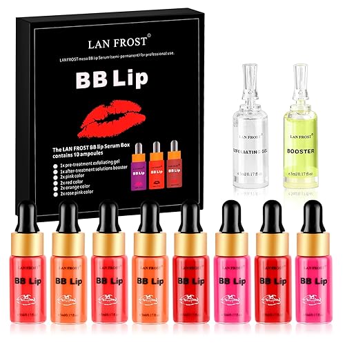 BB Lips Serum Starter Kit, Semi-permanent Makeup Treatment, Lip Gloss BB Lip Serum, Including 4 Colors of Liquid Lip Pigments, Exfoliating Gel and Intensifier