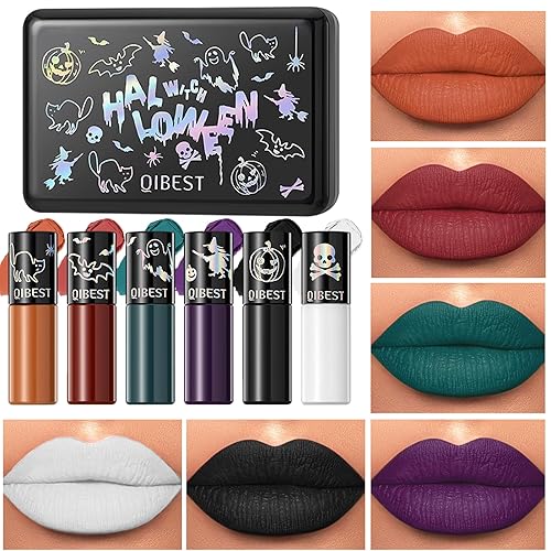 Dulele Dark Red Purple Green Black Matte Liquid Lipstick Gift Set, High Pigmented Lip Gloss for Girls & Women, Long Lasting 24 Hours Waterproof Lip Stain for Halloween Cosplay Goth Costume Makeup