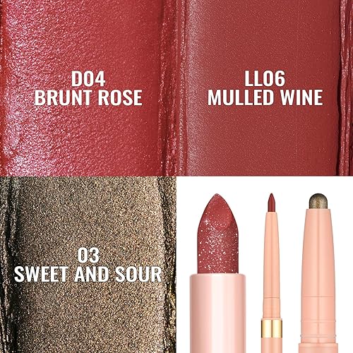 Oulac Lip & Eye Makeup Set 3PCS Included Shimmer Lipstick, Lipliner, Eyeshadow, Gift Lipstick for Women, D04+EST03+LL06