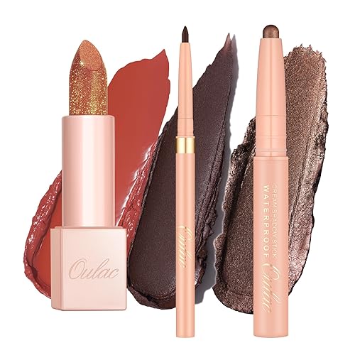 Oulac Lip & Eye Makeup Set 3PCS Included Shimmer Lipstick, Lipliner, Eyeshadow, Gift Lipstick for Women, PG06+EST15+EL03