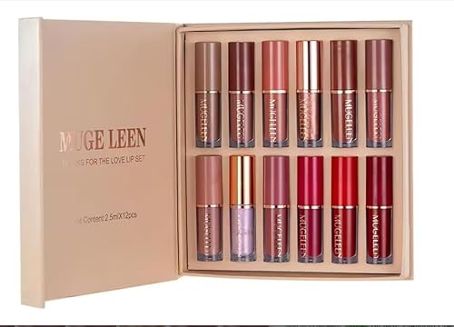MUGE LEEN 12-Pcs Velvet Matte Liquid Lipstick Set – Waterproof, Long-Lasting, Quick-Drying, Non-Stick Cup Nude Lip Stain Kit, Up to 24H Wear, Professional Lip Makeup Gift Set for Women