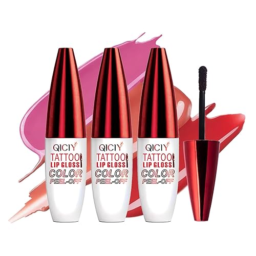 3PCS Peel Off Lip Stain Lip Tint,Waterproof Long-Lasting Tear-off Lip Gloss,Peel Reveal Lip Stain,Peel Off Tattoo Lipsticks,Nonstick Cup Lip Gloss, Tattoo Magic Color Lip Set Lip Makeup