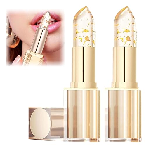 2Pcs Clear Lipstick that Changes Color, Glossy Shine Transferproof Moisturizing Color Changing Lip Stick for Women, Long Lasting 24 Hours
