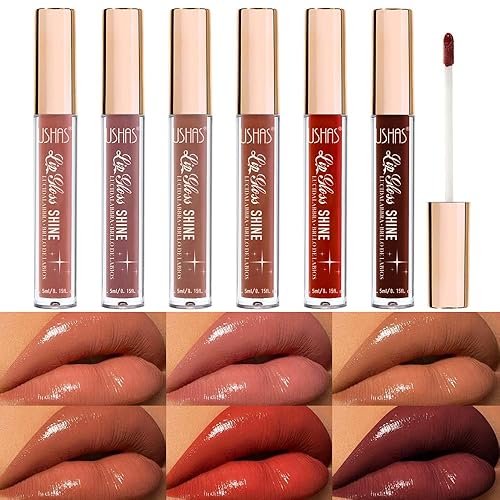 USHAS 6pcs Lip Gloss set - High-Shine Gloss for Fuller Non-Sticky, Lip Tint, Longwear, Weightless, Lip Plumper Gloss, Shimmery Glosses for Women makeup set (Set 2 (07-12), Pack of 1)